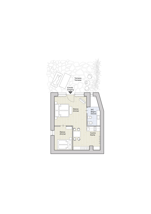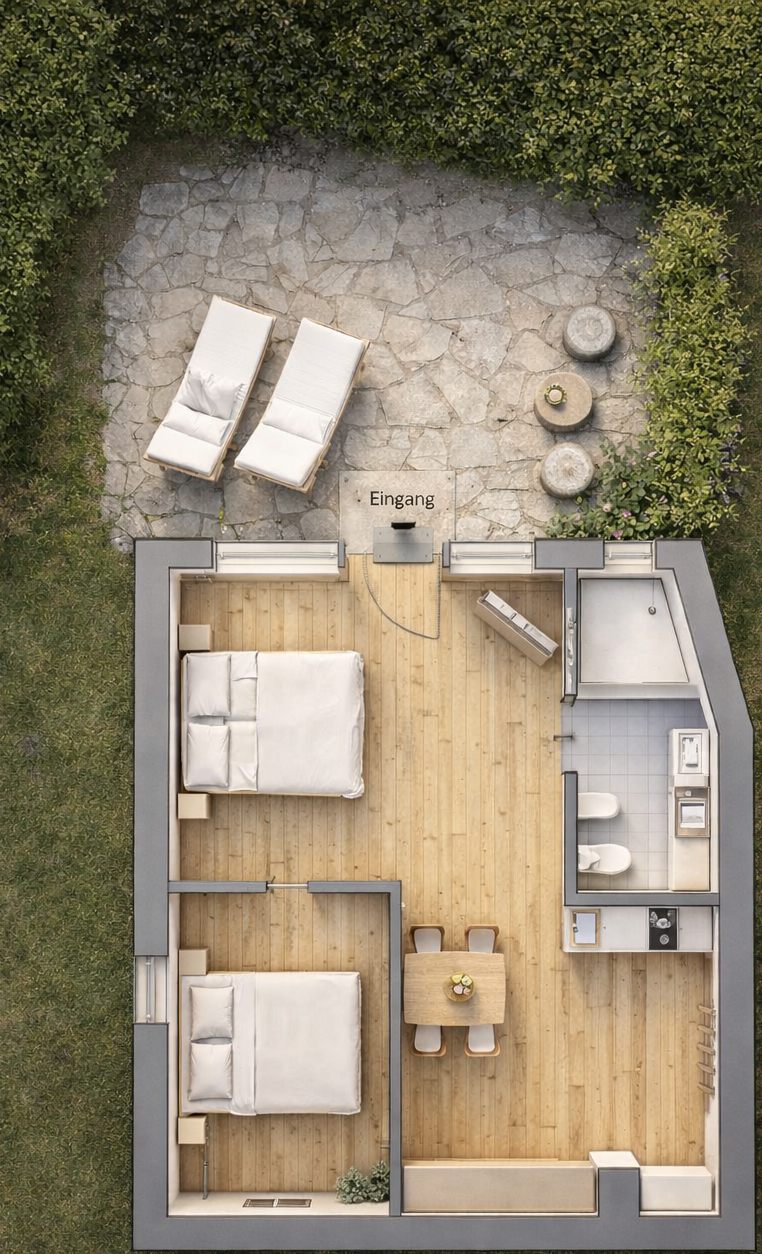 Appartamento moderno e spazioso con due locali al 1° piano (56 m²) per 2–4 persone – con aria condizionata